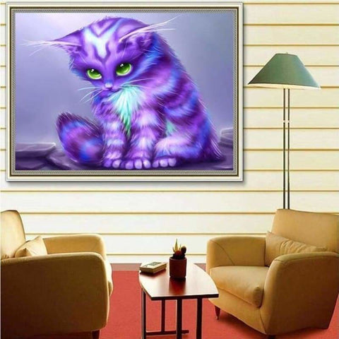 Dream Lavender Little Cat Diy Full Drill - 5D Cross Stitch Diamond Painting Kits VM0039