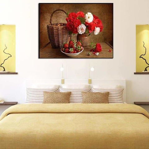 Full Drill - 5D DIY Diamond Painting Kits Beautiful Red And White Flower in Vase Strawberry